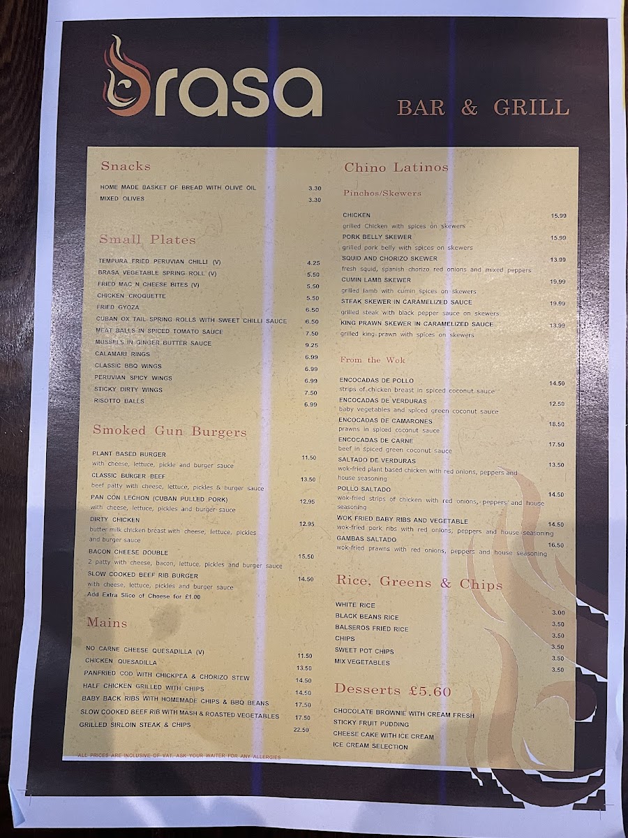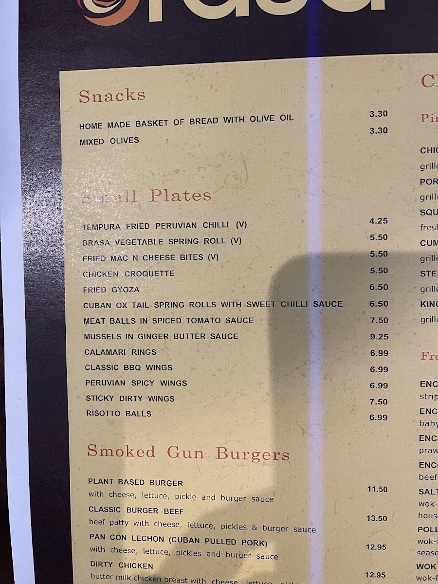 Welcome to Brasa Bar & Grill, a culinary gem located in Welling, UK. This vibrant establishment boasts a diverse menu that delights the senses with offerings from the wok, skewers, and more. Each dish showcases an expert fusion of flavors, from the savory Encocadas de Pollo (£15.50) to the mouthwatering Cumin Lamb Skewers (£21.00).